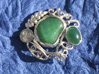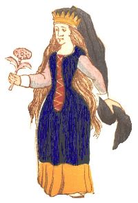 There was a widespread worship of two goddesses in the ancient Indo European world, one for life above ground and the other for life under the surface, (see our 'Eleusinian Mysteries'). The one that we are concerned with here is Demeter, and our picture shows her as a bride, (see 'Betley Window'). In the symbol she is seen wielding a scythe.